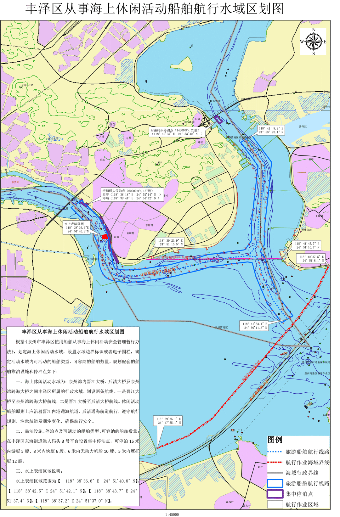 為進一步規范豐澤區海上休閑船舶航行秩序,保障海上交通安全,依據《福建省使用船舶從事海上休閑活動安全管理辦法》有關法律法規,現將《豐澤區從事海上休閑活動船舶航行水域區劃圖》予以公布。